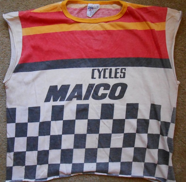The Maico liked it when you stayed forward on it. Note that the clutch lever looks like it s adjusted almost straight down.