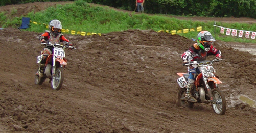 Some of the younger riders on the track were in the 65cc classes. Many handled themselves in the mud quite well,