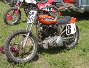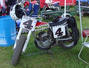 Bultacos like this have been raced in Dirt Track for the last 30 years. They also double as a gear rack.