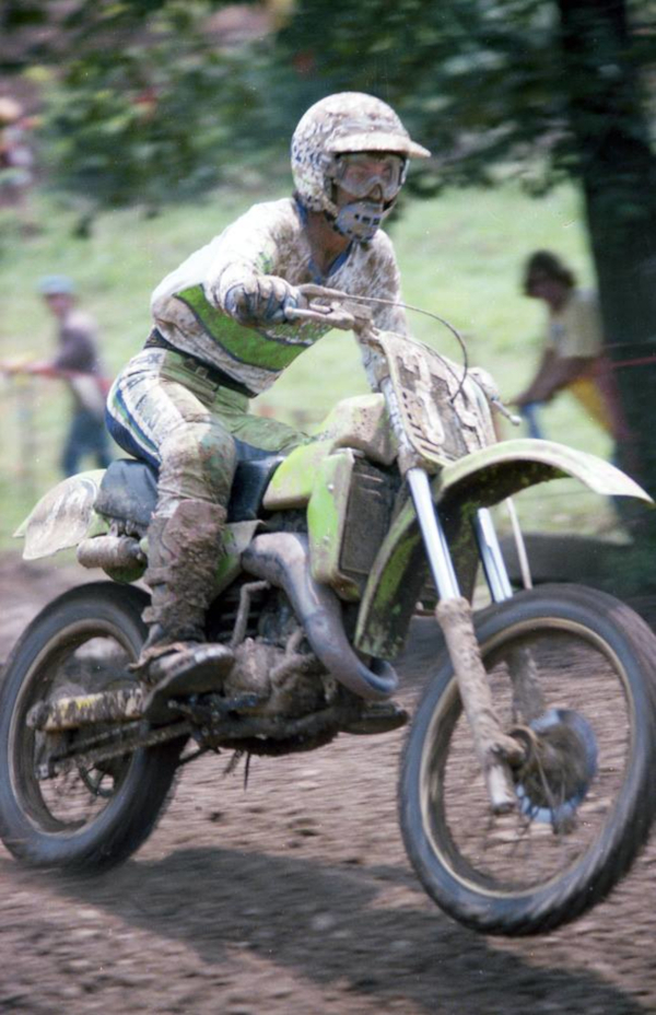 Werner Straub captures Tom on the gas at the 1981 Red Bud National